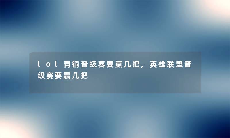 LOL青铜晋级赛是让青铜段位的玩家有机会晋级到白银段位的比赛。在这个赛季结束之前,都我想能够在游戏中取得更好的成绩,提升自己的段位。要赢多少把才能晋级呢?