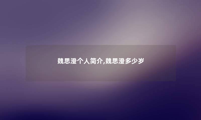 大家好,我是魏思澄!感谢大家阅读,我想大家都身体健康,心情愉快!