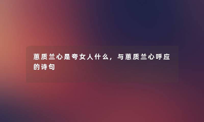 以上是我对蕙质兰心的一些理解和相关的诗句。我想大家能够这些诗句和故事,感受到蕙质兰心女性的美丽和魅力。谢谢大家的阅读!
