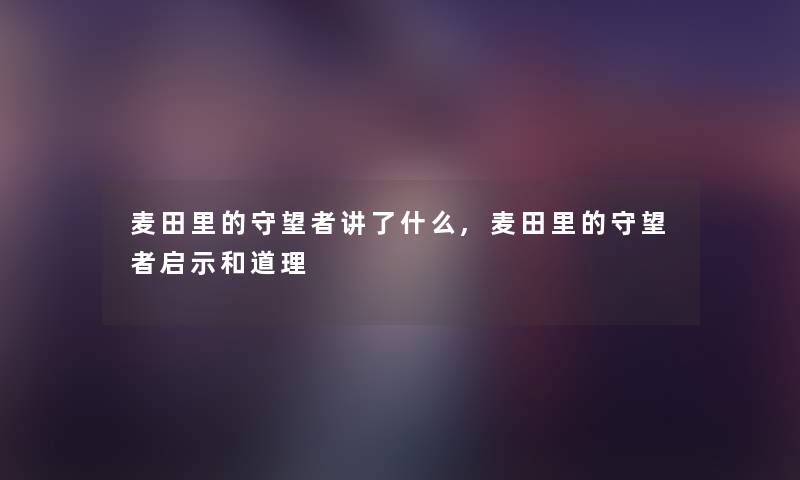 大家好,我是小编小麦,今天给大家分享一篇关于《麦田里的守望者》的。我想大家能够喜欢!