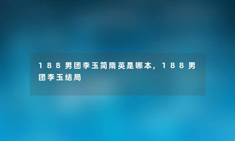 大家好啊,我是生活随影"生活随影"!今天我要和大家聊一聊188男团李玉简隋英是哪本的故事,还有188男团李玉的结局。