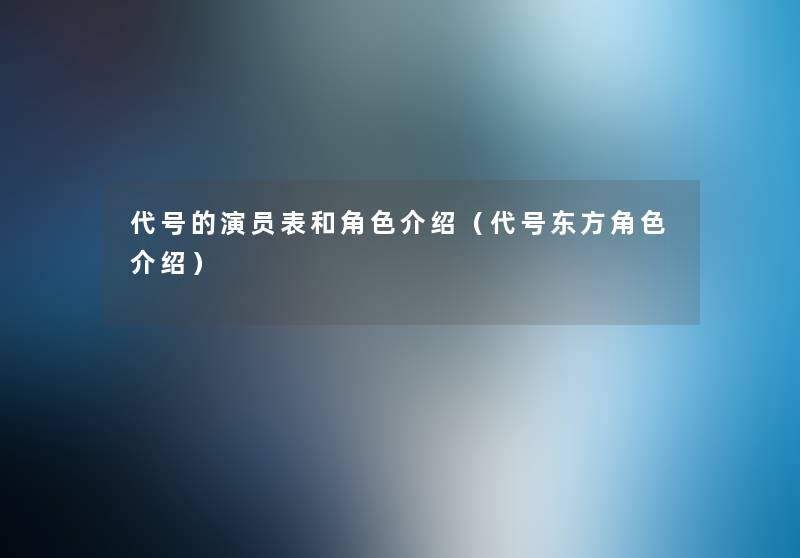 大家好,我是小橙子。今天我来给大家介绍一部备受瞩目的电视剧《代号东方》的演员表和角色介绍。