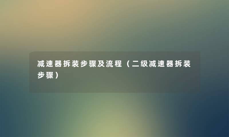 步骤,就成功完成了二级减速器的拆装过程。在实际操作中,还需要根据具体的减速器型号和要求进行操作。